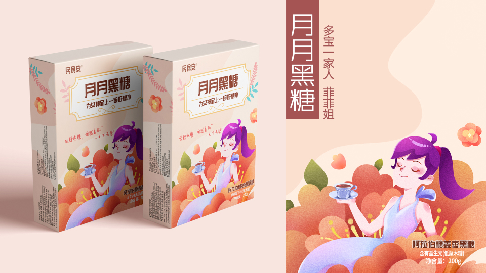 豆神希望把一個(gè)品牌視覺及包裝設(shè)計(jì)到足夠的差異化和高品質(zhì),可以帶來廣泛的關(guān)注和引流的作用。通過民食安的項(xiàng)目我們細(xì)心的挖掘黑糖飲食文化,同時(shí)了解大眾消費(fèi)需求,以“IP形象多寶一家人+阿拉伯糖黑糖”的商業(yè)形態(tài)將此推廣到大眾化市場(chǎng),打造出屬于中國(guó)的美食文化品牌。