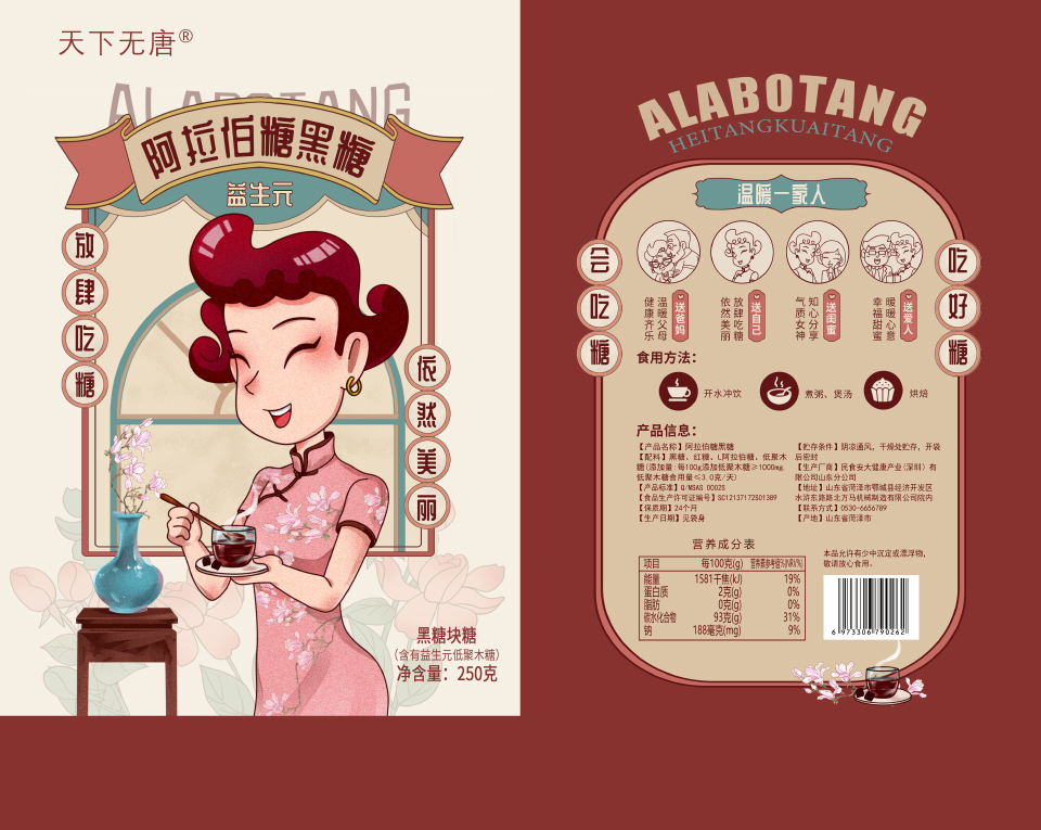 在設(shè)計(jì)中,多寶一家人中美玲媽媽形象,也都對(duì)應(yīng)了的民食安阿拉伯糖黑糖——放肆吃糖,依然美麗的理念,在潛移默化間向人們傳達(dá)了時(shí)尚的飲食理念并且與傳統(tǒng)文化相結(jié)合,以此擴(kuò)大該品牌的知名度。